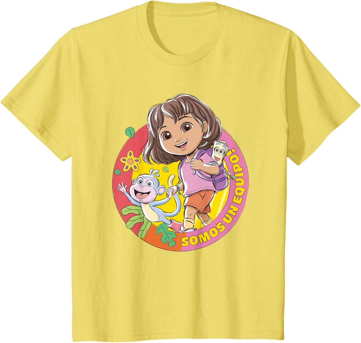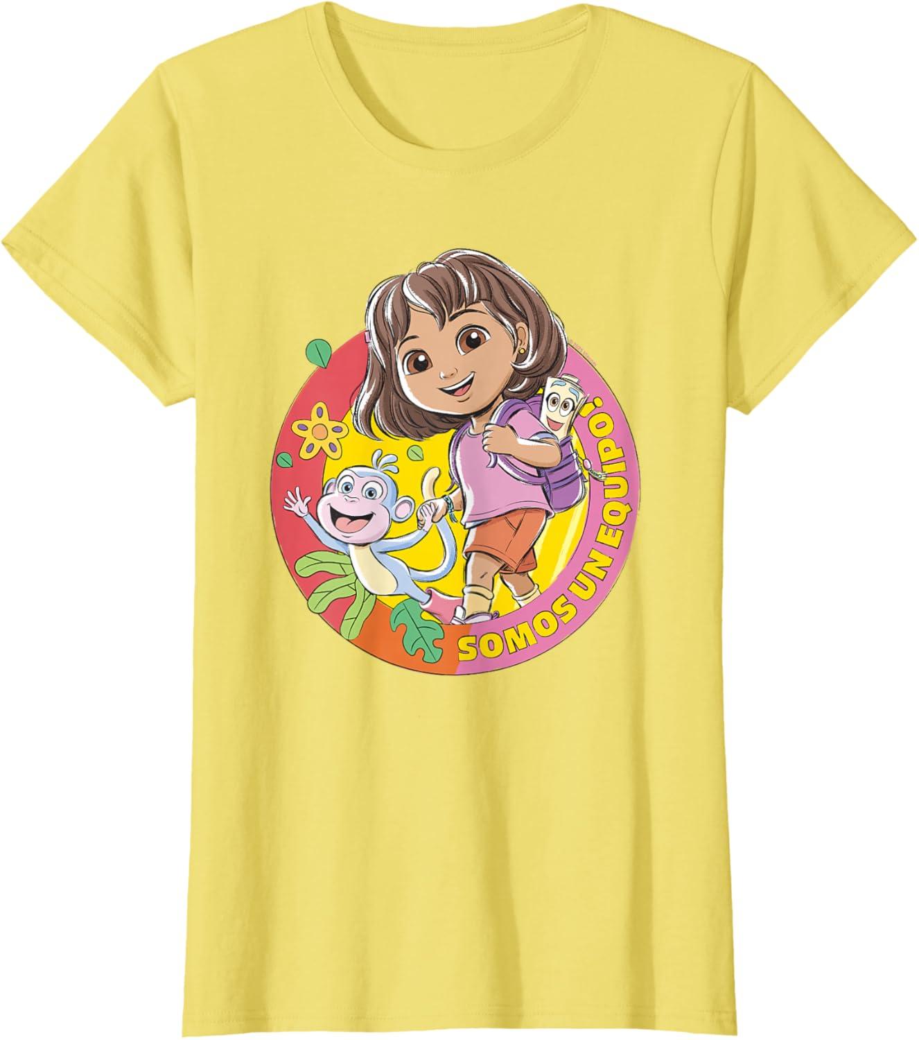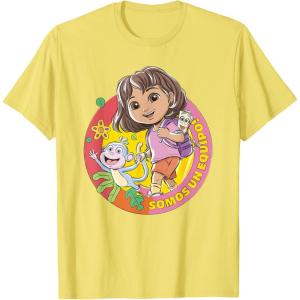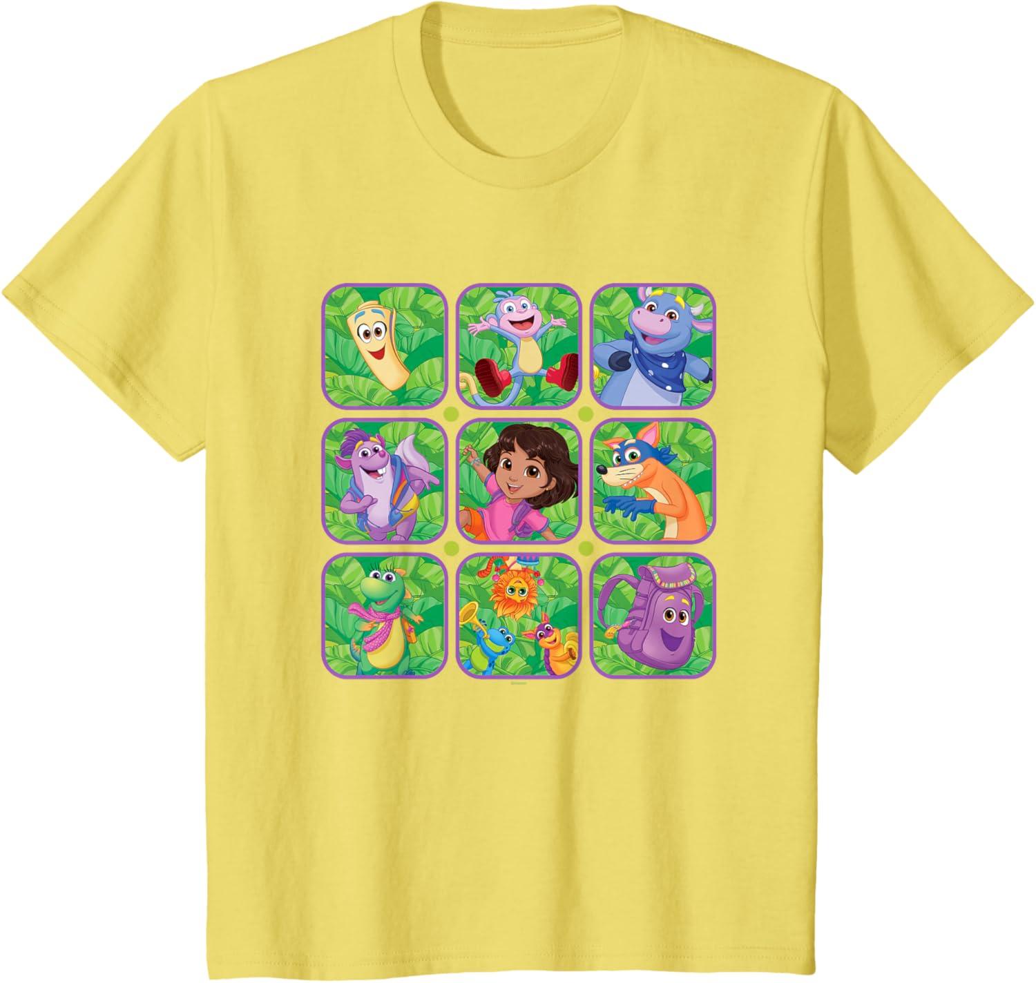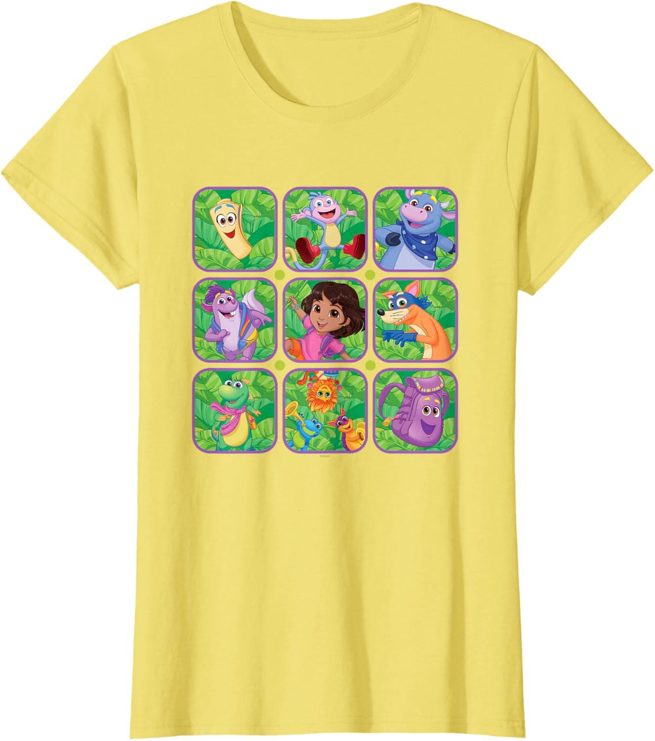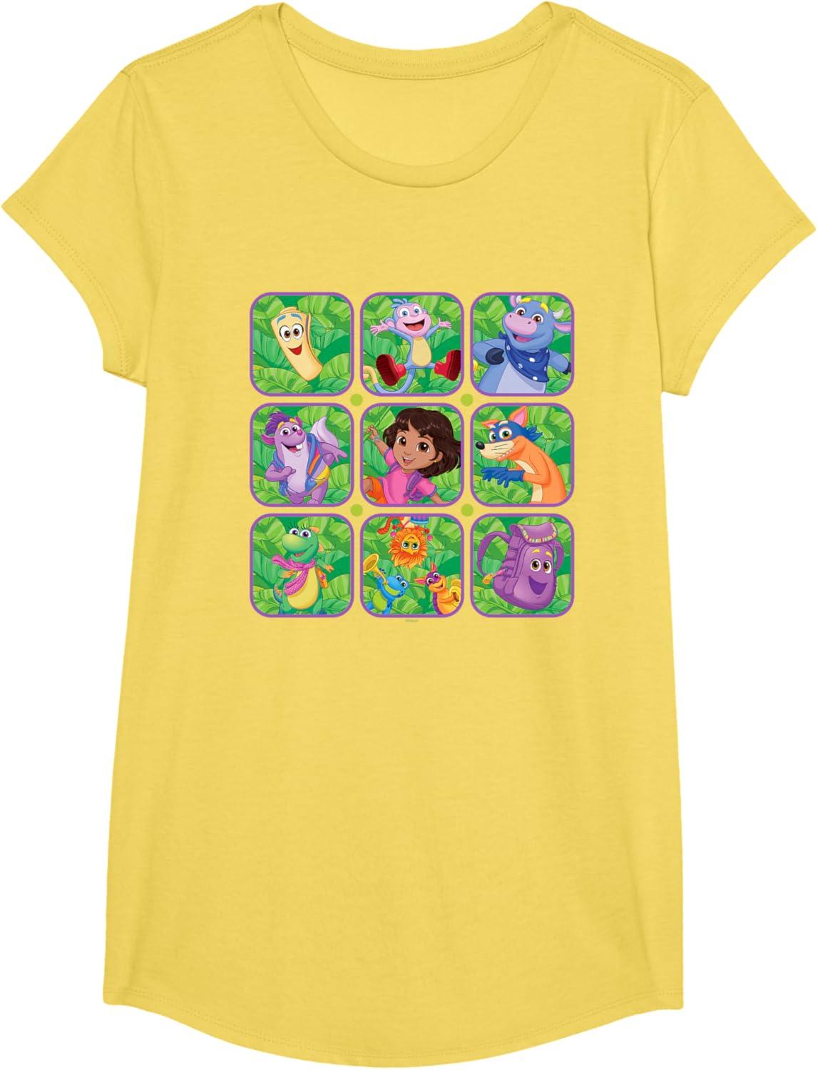 - Don't break the bank! Get the Dora the Explorer Group Shot Characters Boxes Colorful Logo T-Shirt(Lemon Yellow) you want at a price you can afford during our markdown sale.