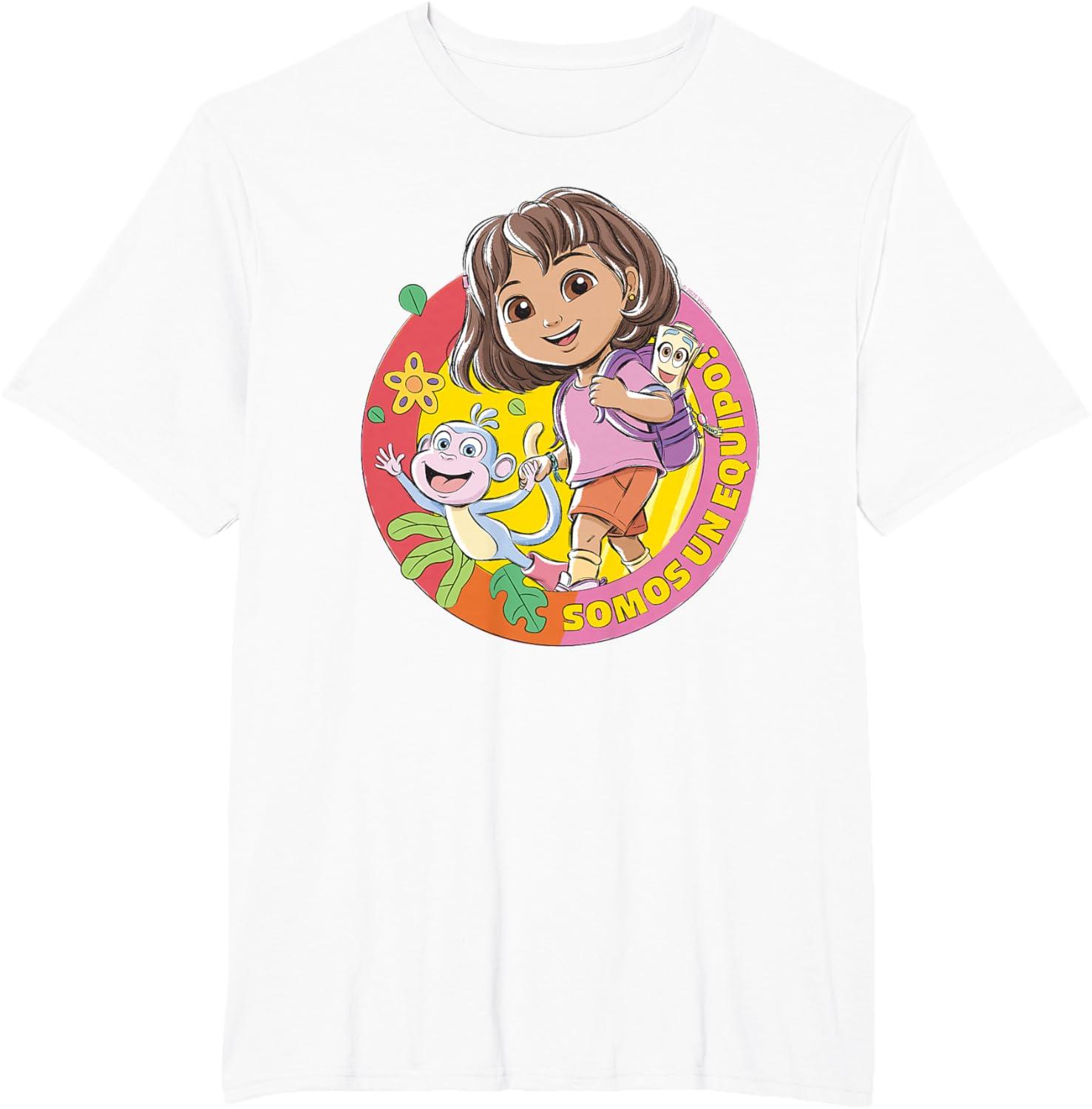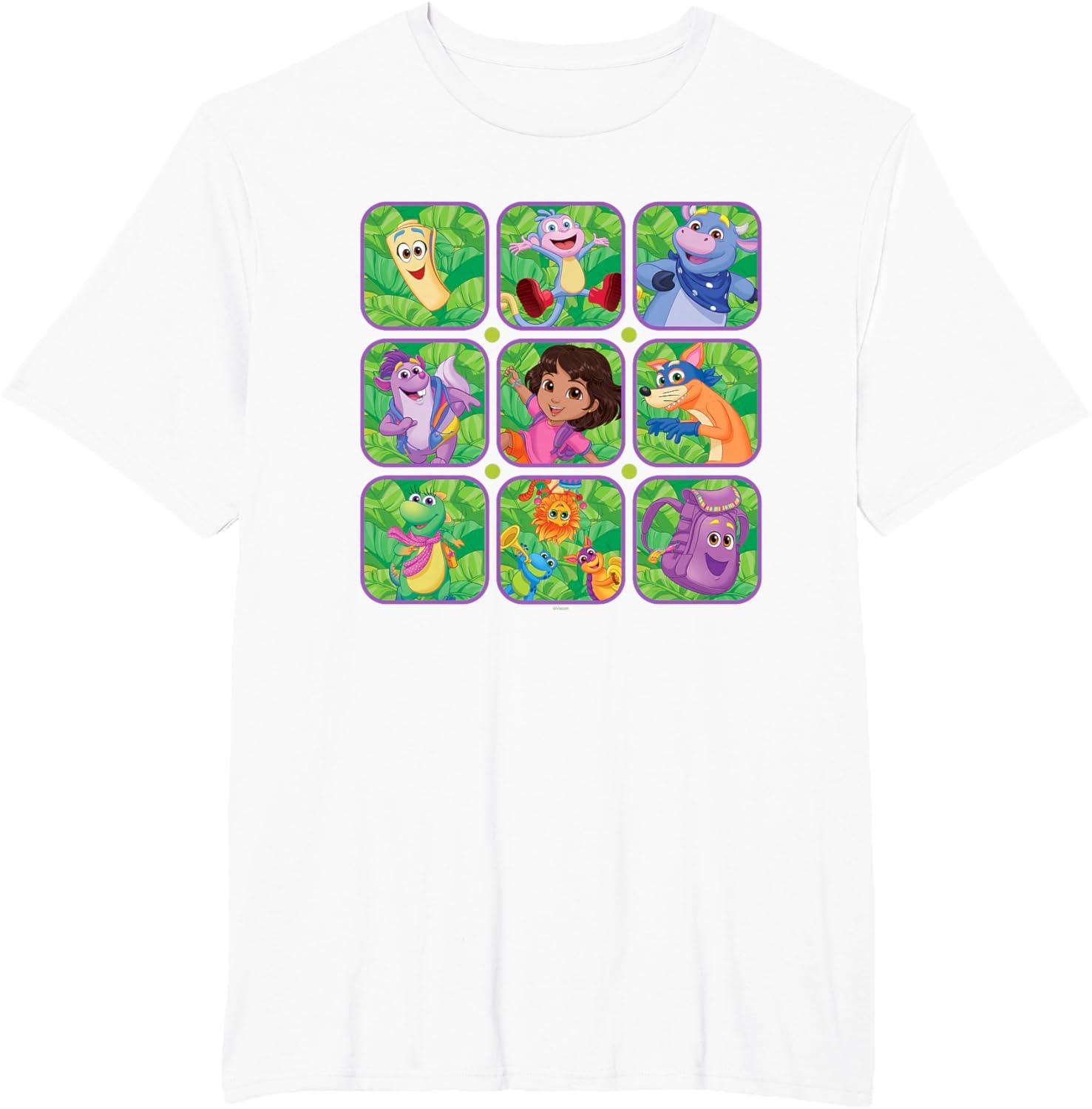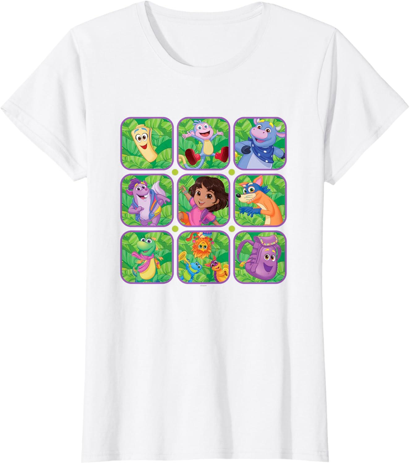 - Save up to 40% on Dora the Explorer Group Shot Characters Boxes Colorful Logo T-Shirt(White) styles during our end-of-season sale.