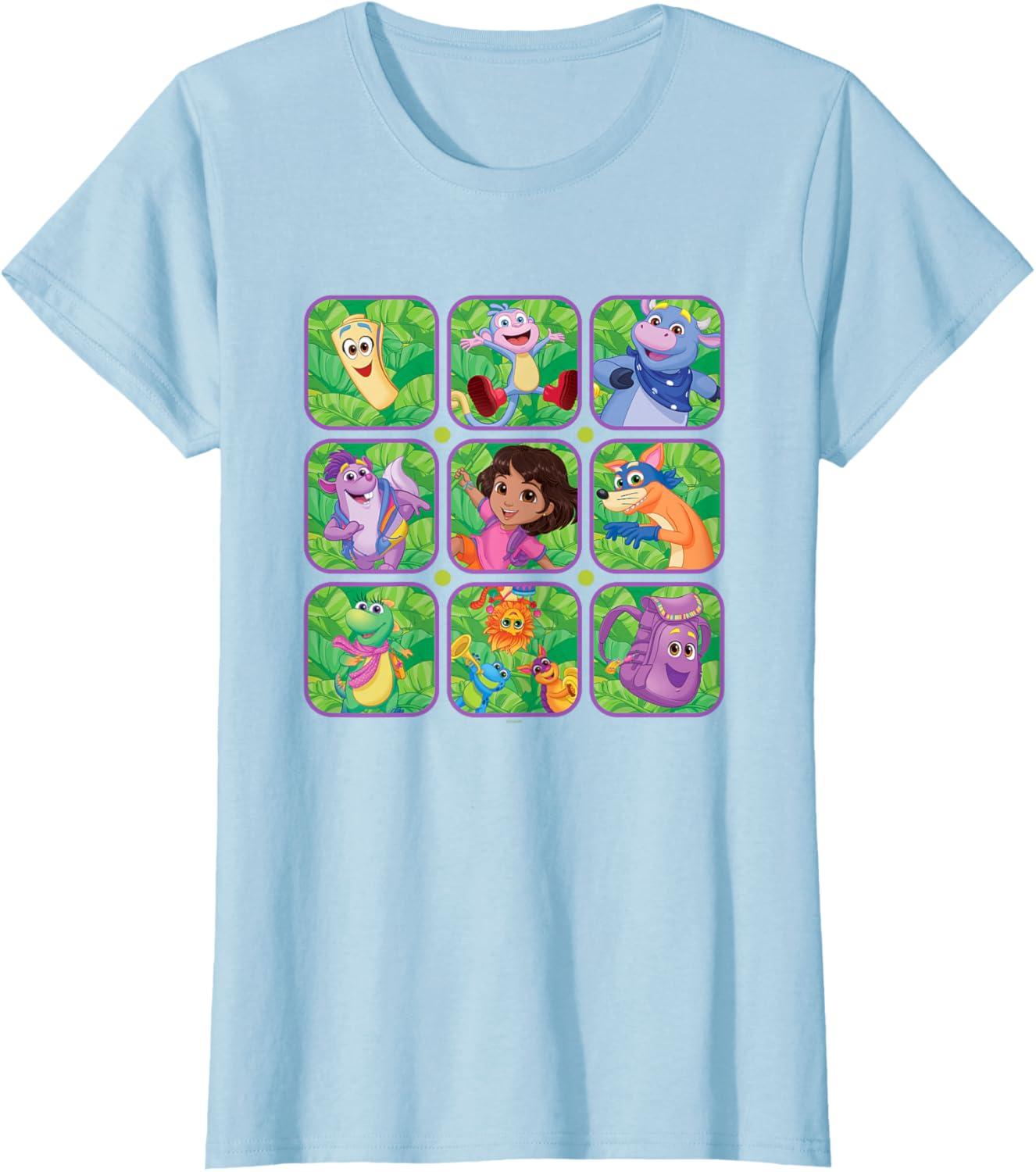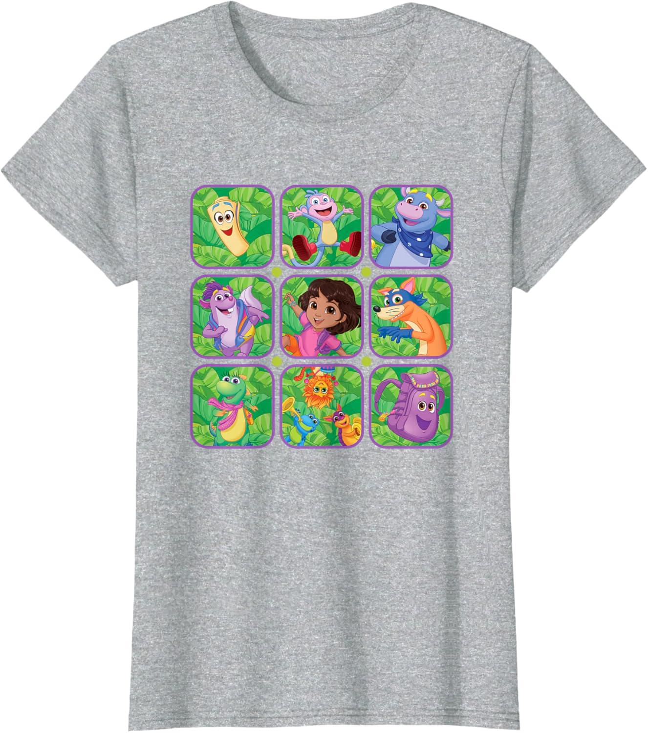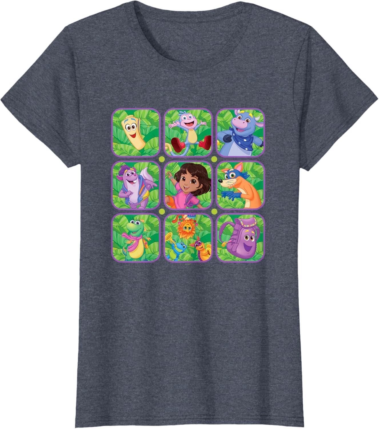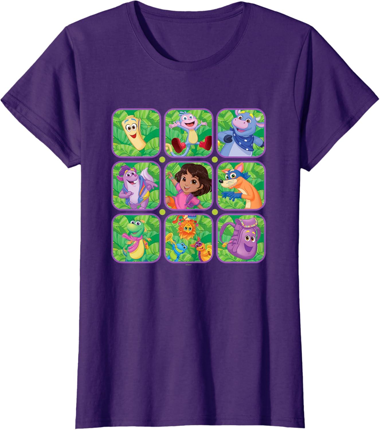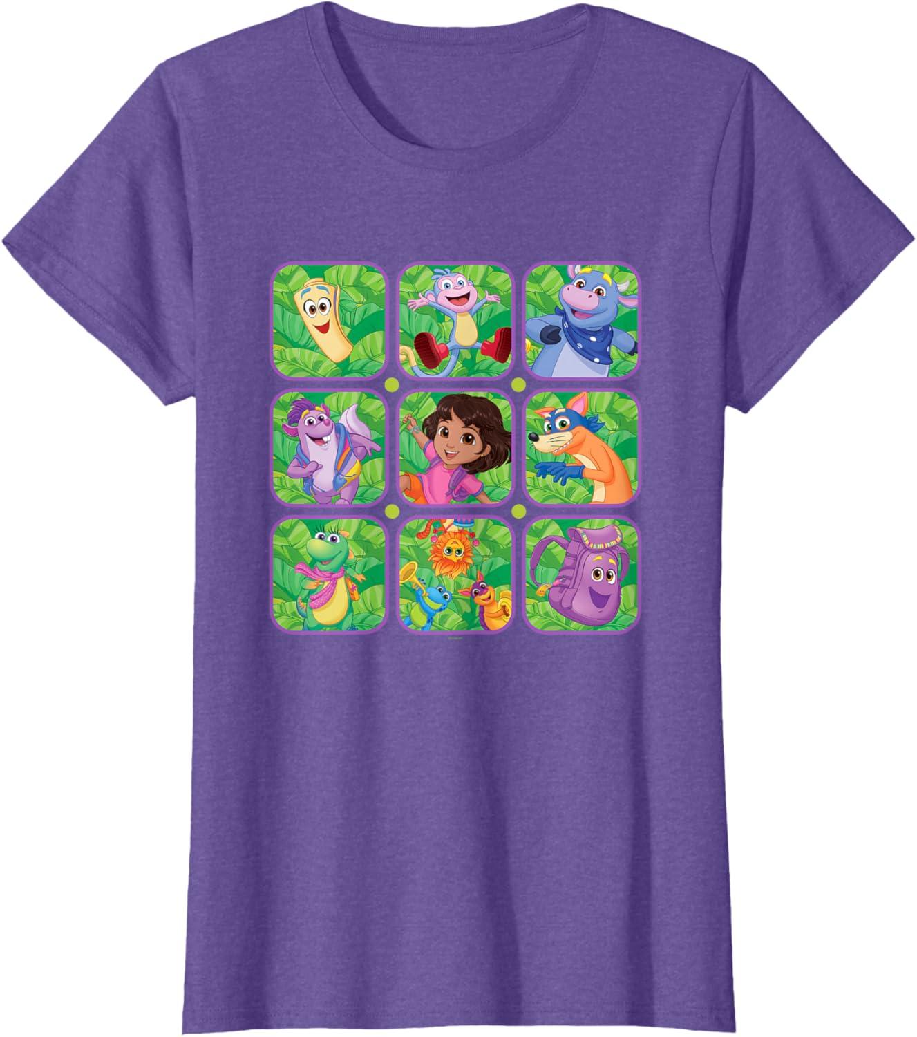 - Our clearance event features the best deals on Dora the Explorer Group Shot Characters Boxes Colorful Logo T-Shirt(Purple Heather) and accessories. Shop now!