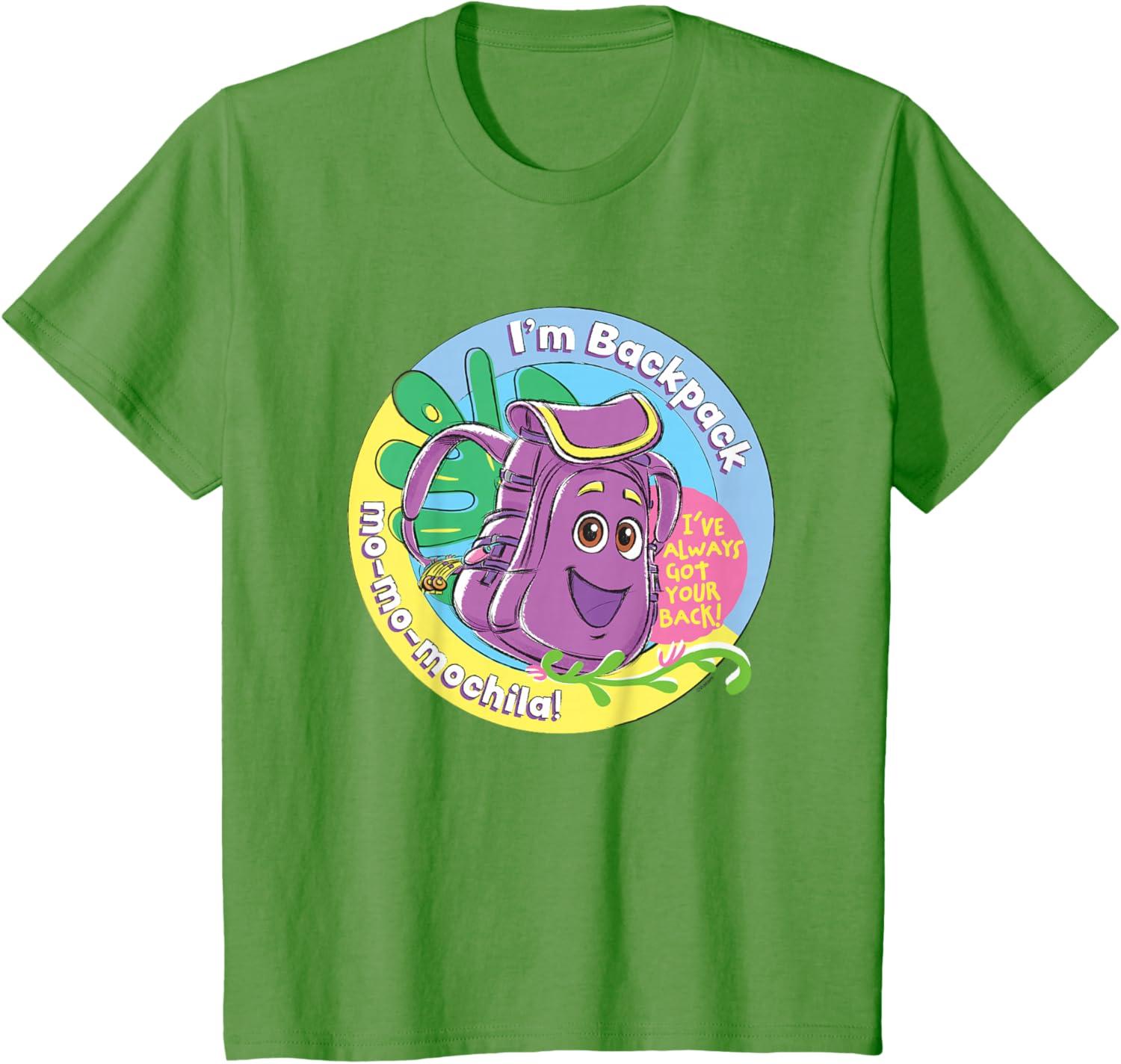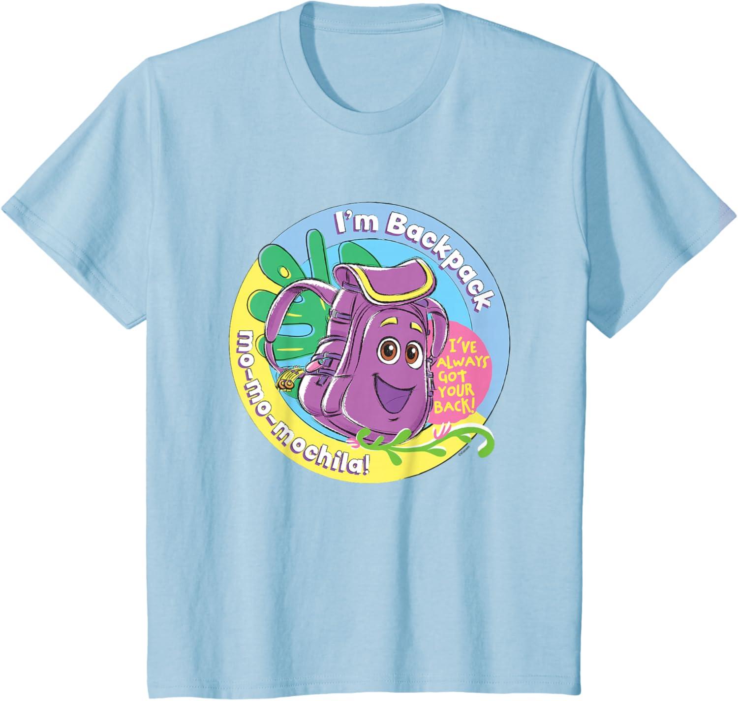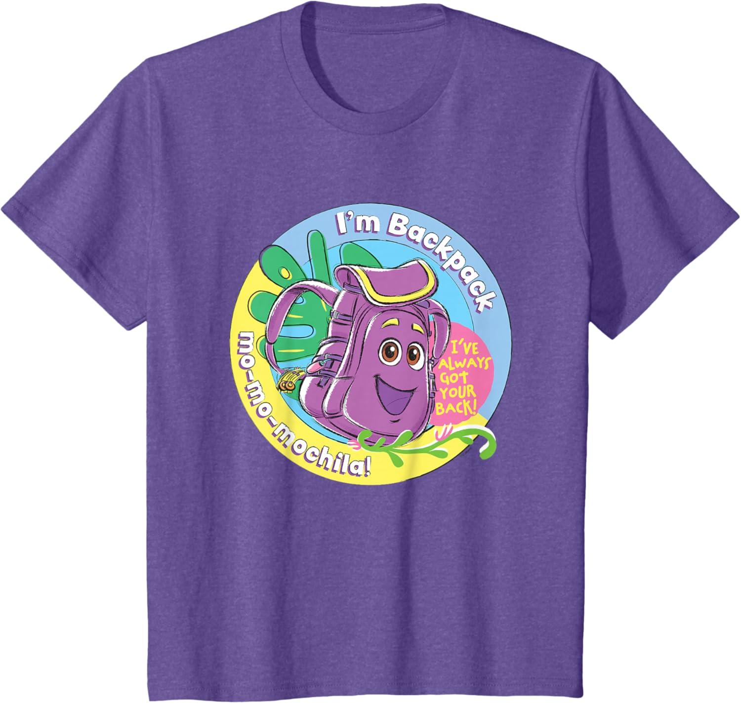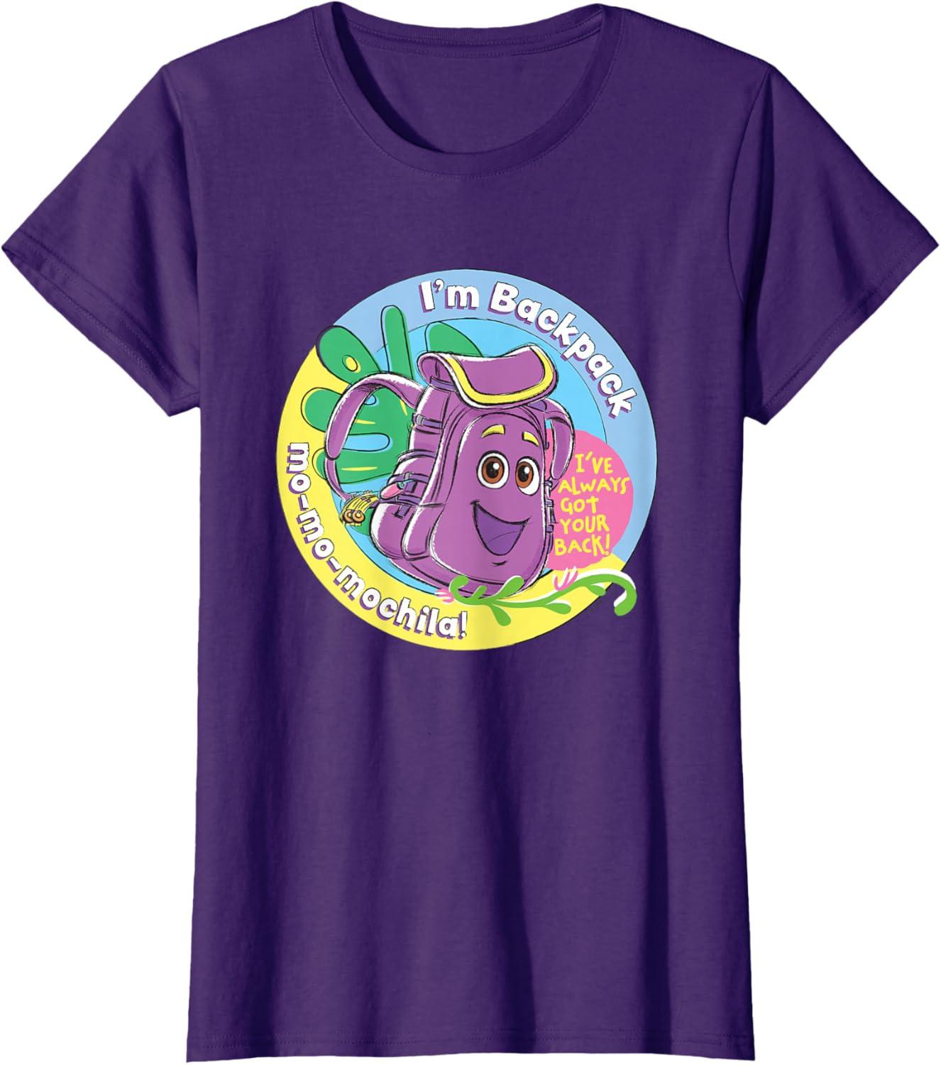 - Save up to 40% on Dora the Explorer I'm Backpack Mo-Mo-Mochila! Chest Logo T-Shirt(Purple) styles during our end-of-season sale.