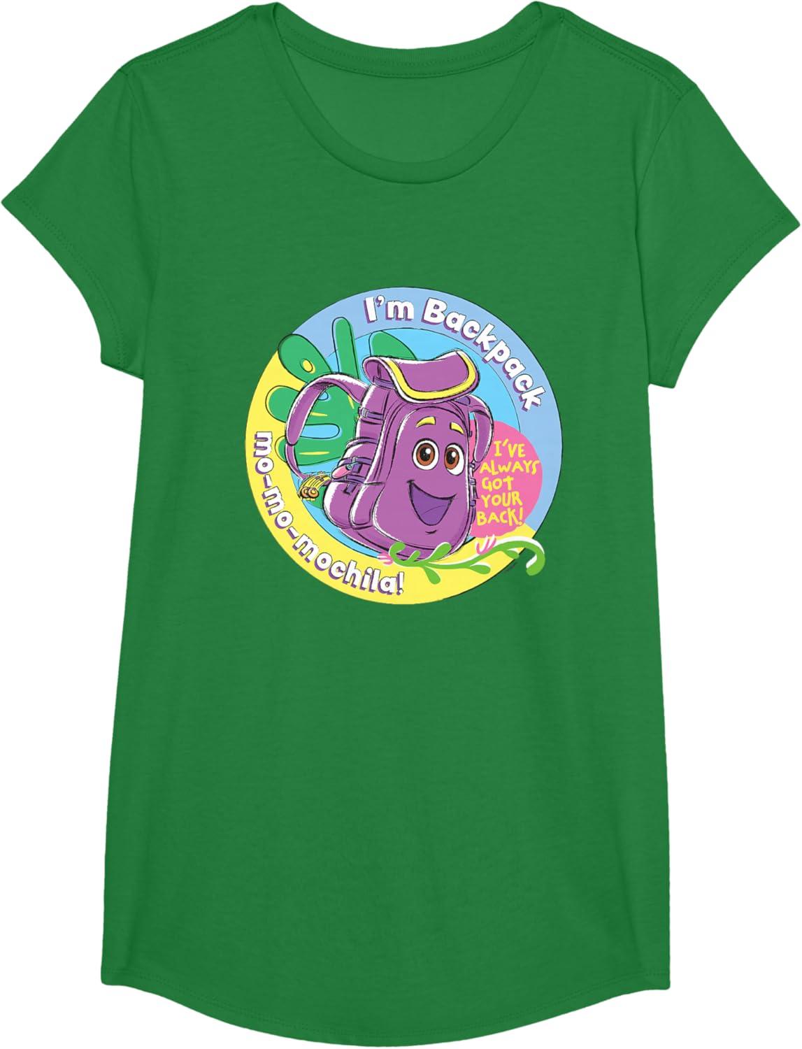 - Don't miss out on our limited-time offer: get a free {accessory} with your purchase of Dora the Explorer I'm Backpack Mo-Mo-Mochila! Chest Logo T-Shirt(Kelly Green).
