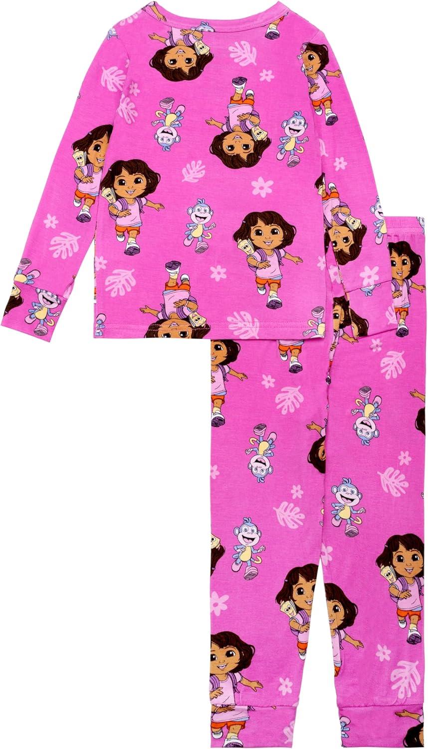 Nickelodeon Girls’ 2-Piece Snug-fit Viscose Pajama Set, Soft & Cute for Kids(Dora Fun Run)