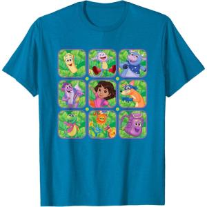 Dora the Explorer Group Shot Characters Boxes Colorful Logo T-Shirt(Sapphire Blue)