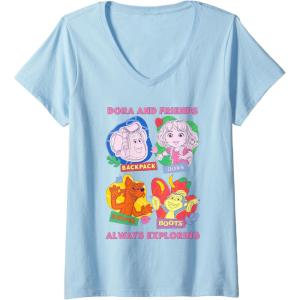 Womens Dora (2024) Dora and Friends V-Neck T-Shirt(Baby Blue)