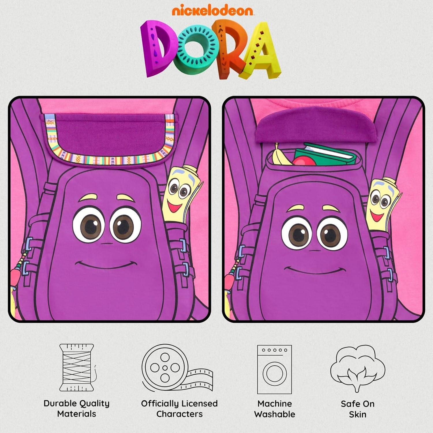 DORA Nickelodeon Girls Cosplay T-Shirt & French Terry Shorts Outfit Set Toddler to Little Kid Sizes (2T – 7-8)(Pink / Orange)