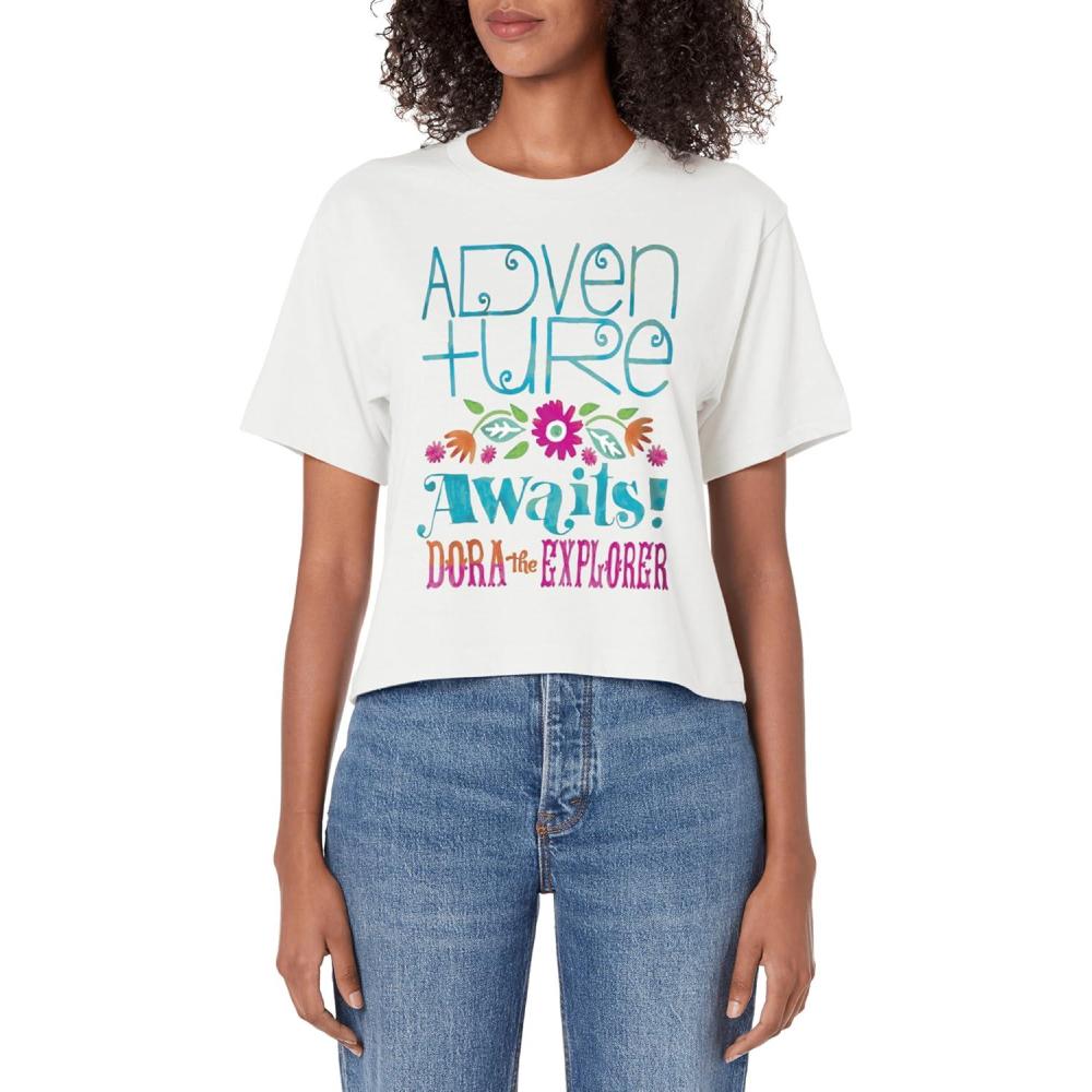 Dora the Explorer Adventure Awaits Floral Band Logo Women’s Crop Top(White)