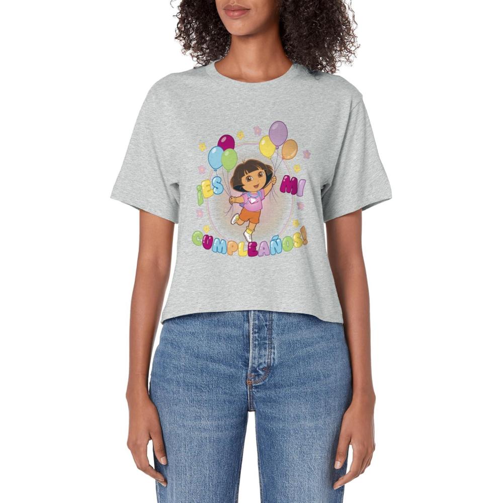 Dora the Explorer Birthday Balloon Logo Women’s Crop Top(Heather Grey)