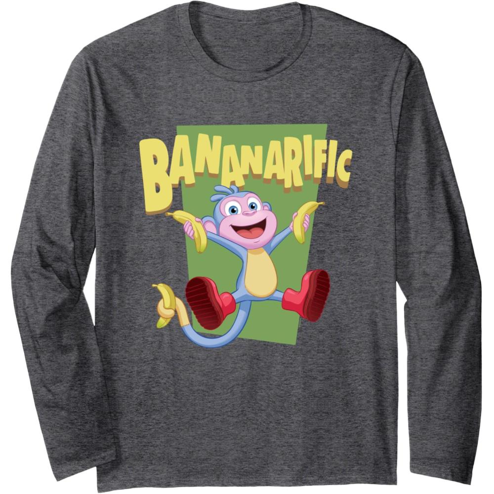 Dora the Explorer Cute Boots Bananarific Big Chest Logo Long Sleeve T-Shirt(Dark Heather Grey)