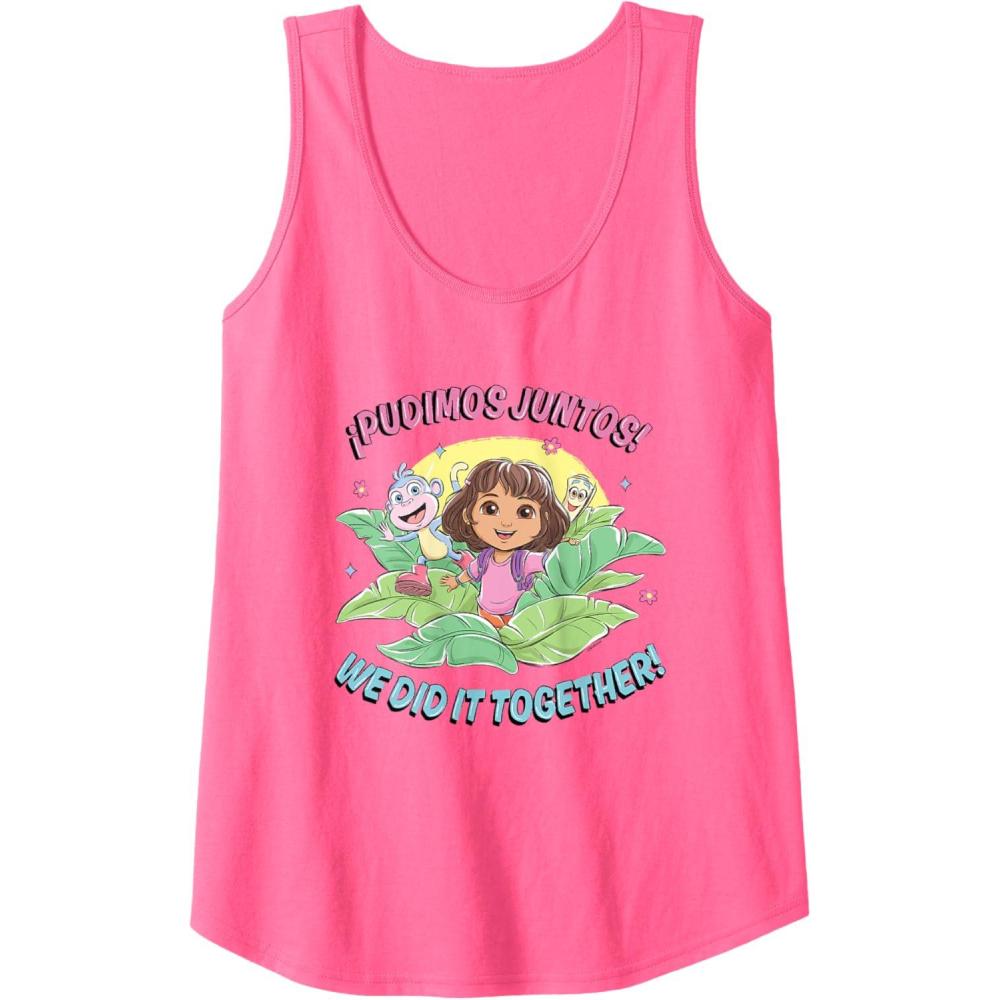 Dora the Explorer ¡Pudimos Juntos! We Did It Together! Logo Tank Top(Neon Pink)